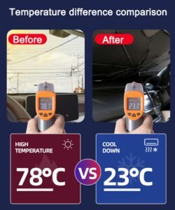 Looking for an easy and effective way to block sun and heat from your car interior? The Foldable Windshield Sun Shade Umbrella is a smart, compact solution that works like a traditional umbrella—just unfold it and place it on your windshield. It provides superior protection against harmful UV rays, intense sunlight, and heat buildup, helping to preserve your dashboard, electronics, and upholstery.